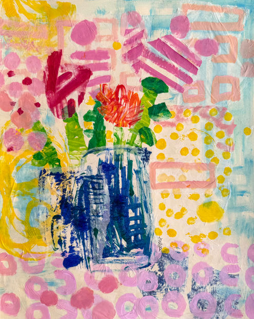 My collage is hand-painted and hand-torn for texture on 140 lb. watercolor paper.