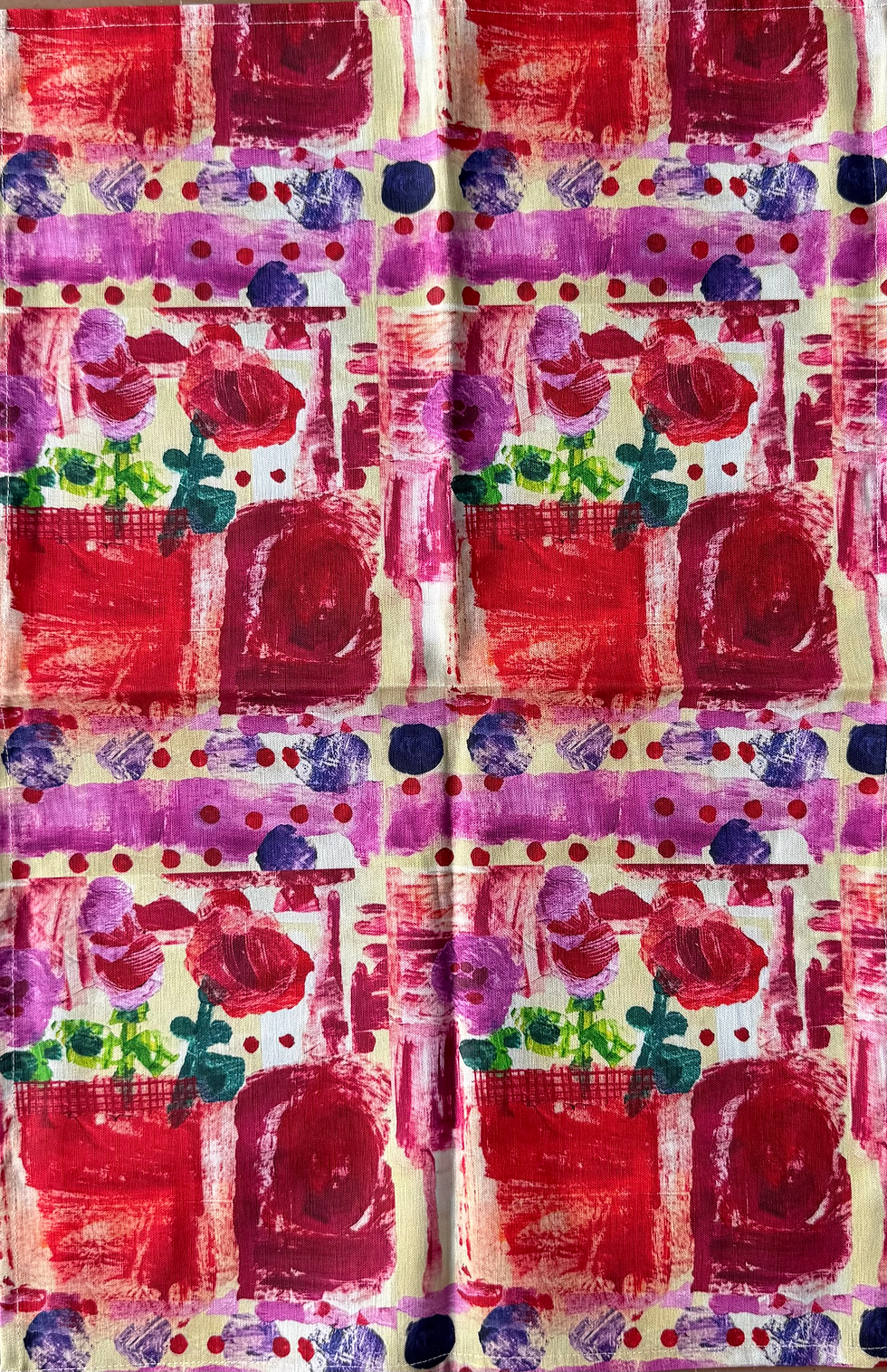 JuLeS Original Abstract Flowers in Vase Tea Towel