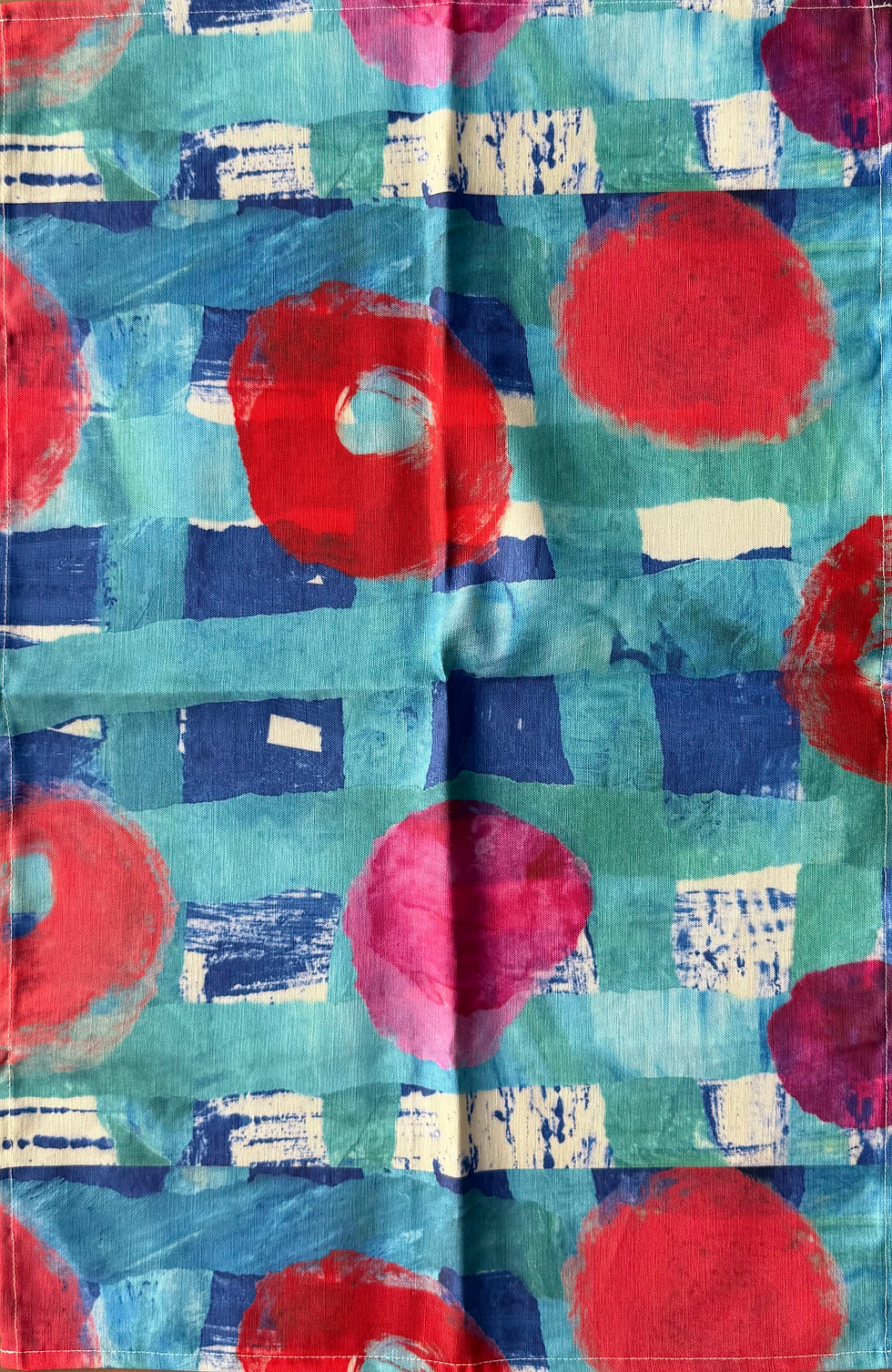 JuLeS Original Abstract Plaid & Circles Tea Towel