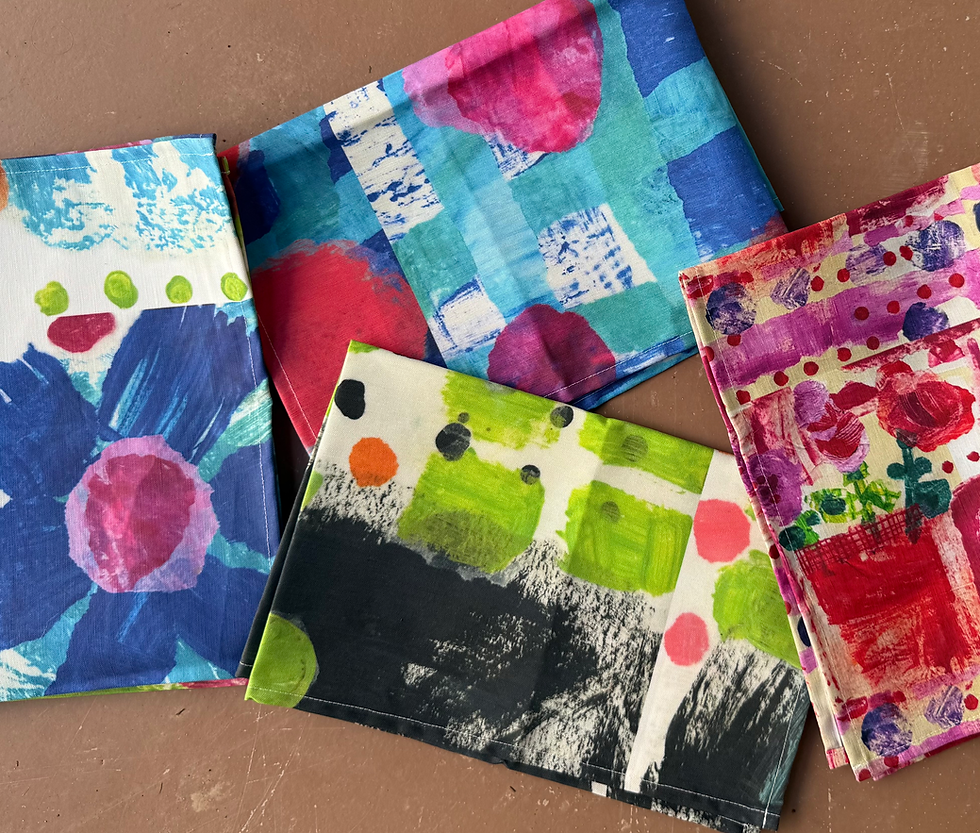 JuLeS Original Abstract 'Groovin' Flowers" Tea Towel