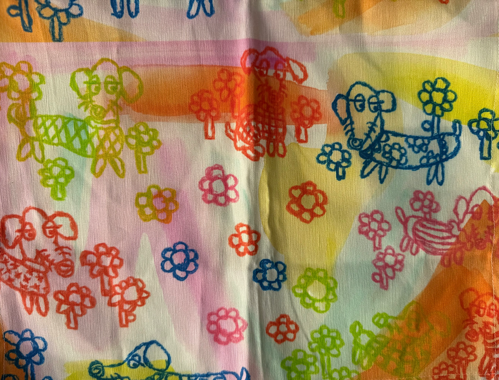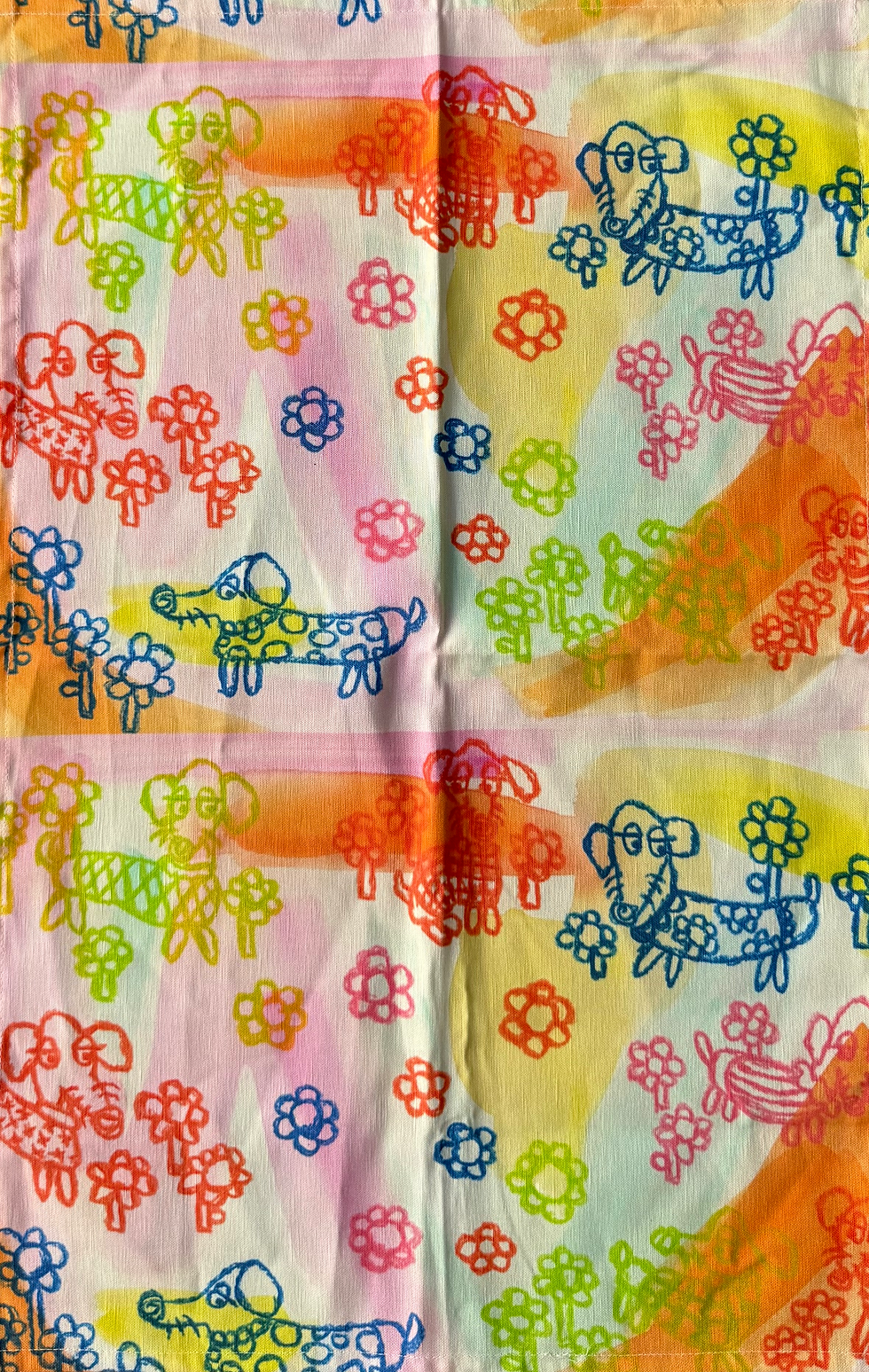JuLeS Original "Wandering Dogs in a Field of Flowers" Tea Towel